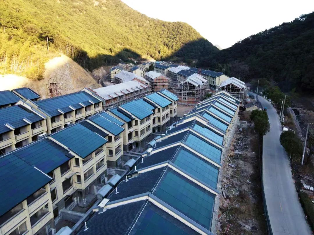 该项目为全村200多户家庭提供清洁能源,该产品集发电、防水、美观、装配式一体化安装于一身。取代传统琉璃瓦、陶土瓦、金属瓦等屋面,为建筑赋能,创造发电收益,提高全民收入水平。完美诠释了“建筑光伏一体化(BIPV)”的发展理念。