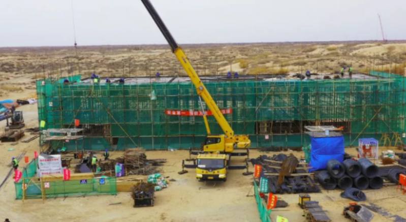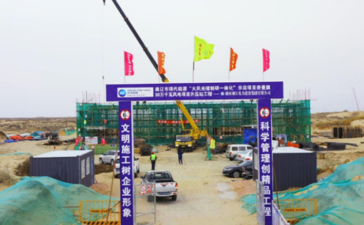 阳春三月,春寒料峭,在奈曼旗明阳智慧能源30万千瓦风电项目升压站工程建设现场,塔吊林立、机器轰鸣,工人们正有序施工。