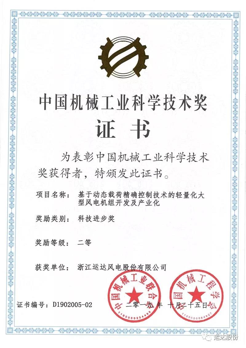 近日,中国机械工程学会在年会上表彰了2019年度中国机械工业科学技术奖。由运达股份与金风科技、上海电气、中材科技、沈阳工大联合申报的《基于动态载荷精确控制技术的轻量化大型风电机组开发及产业化》荣获科技进步二等奖。
