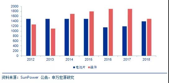2005-2012 年,SunPower 先后新建/购买多座电池片、组件工厂,总电池片产能由 108MW 提升至 1500MW;总组件产能由 30MW 提升至 1270MW。2012 年后,受到产业周期和竞争格局变动影响,SunPower产能扩张速度明显放缓。2014-2017 年资产较轻的组件产能扩张较快,叠加电池片老产能淘汰,电池、组件产能出现一定程度背离。截至 2018 年,SunPower 拥有电池片产能1400MW,组件产能 1500MW,同时可以利用以东方环晟为代表的第三方产能进行外协生产,整体产能规模位居行业前列。