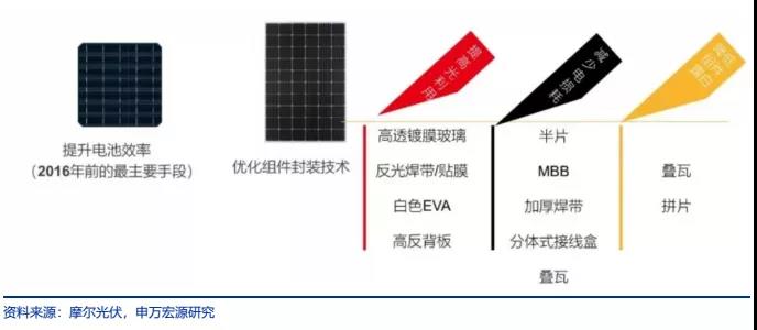 高效组件技术旨在优化组件封装技术、提升组件功率。