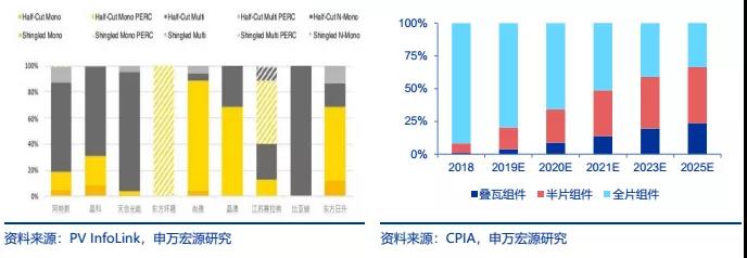 叠瓦组件可以提升组件功率 15~25W,系当前最高效的组件技术。