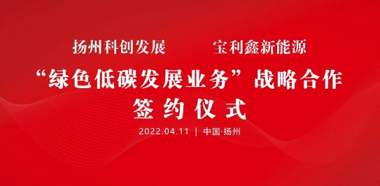 4月11日,在宝胜集团党委书记、董事长杨泽元,扬州科教集团党委书记、董事长耿辉的共同见证下,宝利鑫新能源公司与扬州科教集团科创发展公司签署“绿色低碳发展业务”战略合作协议。