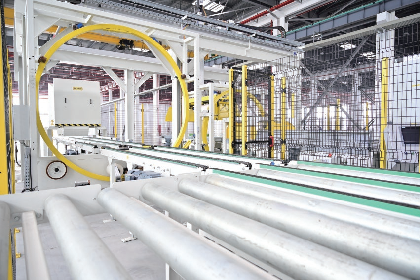 生产线实现了从产品供料、 在线配混到分包码垛等全流程自动化,是全球树脂类高分子防水卷材生产装备和工艺的最高等级技术结晶。