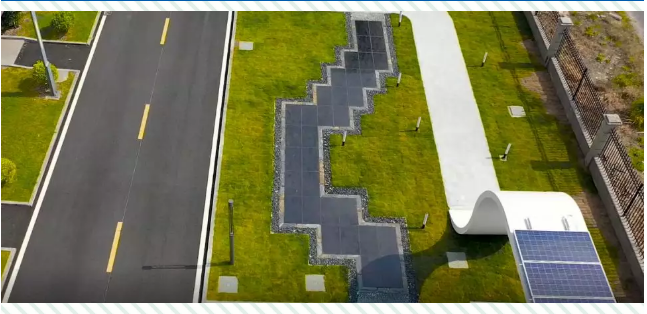 观光、行道的光伏路面,占地面积约25平方米,安装了33块薄膜光伏路组件,作为绿化带的游步道连接光伏小屋与展示区。