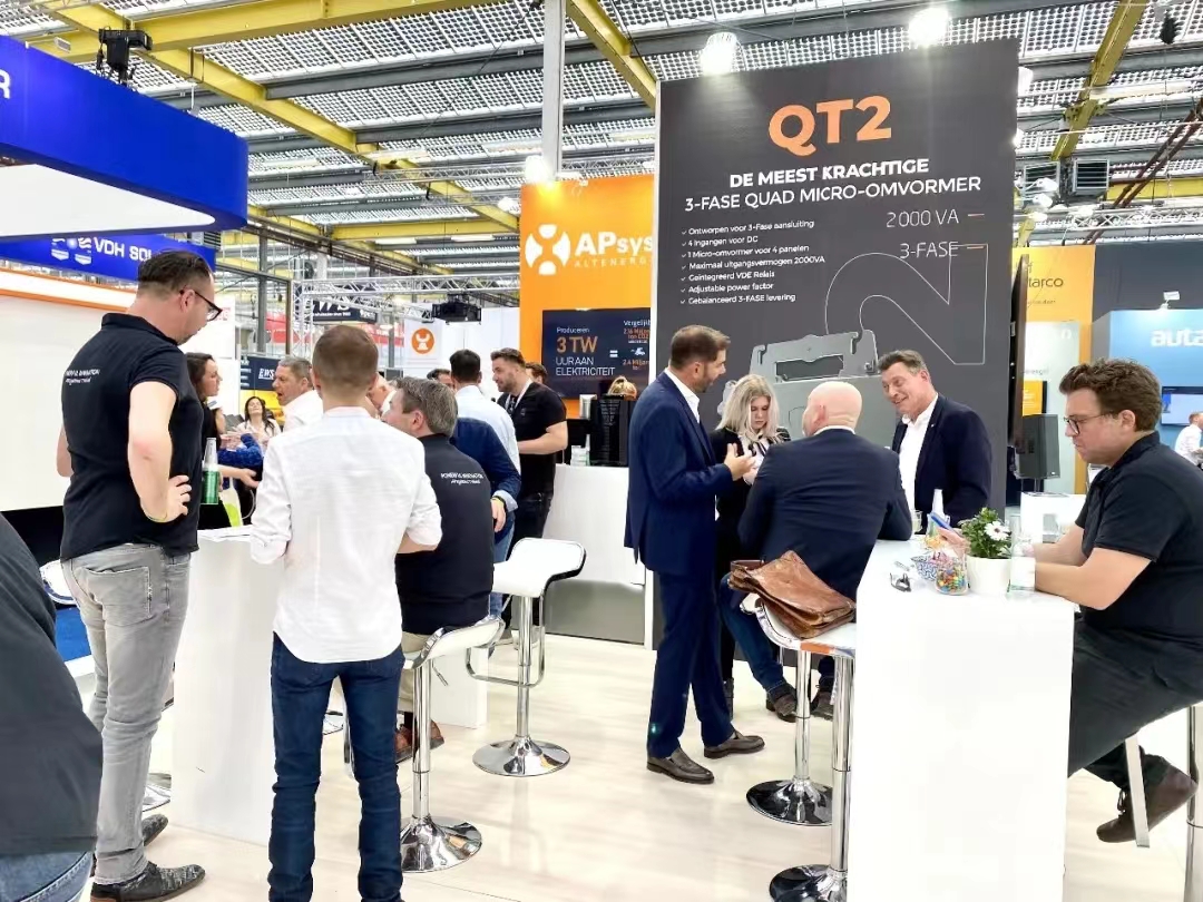 荷兰国际太阳能及储能技术解决方案展览会(Solar Solutions International)是北欧最大的太阳能贸易展览会。展会汇聚了专业的能源信息与最新的研发成果,为光伏设备生产商、分销商、安装商及终端用户提供了一个良好的交流合作平台。昱能科技凭借过硬的产品技术实力与品牌影响力,成为了这场国际盛会中的“明星”,展位吸引了众多观众的关注与认可。