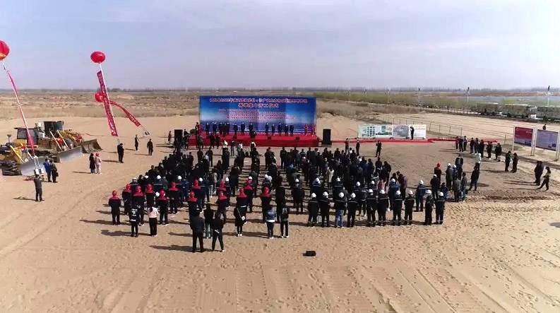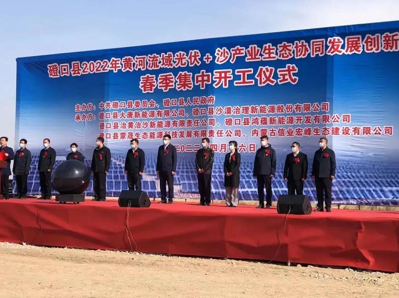 4月16日,巴彦淖尔市磴口县黄河流域光伏+沙产业协同发展创新示范基地春季集中开工仪式在磴口工业园区举行,标志着内蒙古新能源公司磴口县2个100MWp光伏治沙项目正式进入施工阶段。