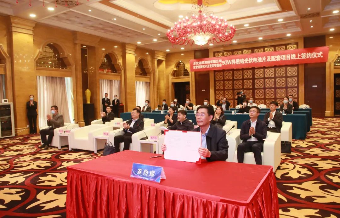 4月21日,水发能源集团有限公司与东营经济技术开发区举行5GW异质结光伏电池片及配套项目线上签约仪式,标志着全省首个异质结电池片生产基地落户东营经济技术开发区。