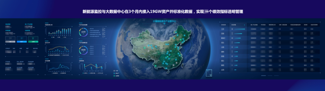 在项目实施阶段,在3个月短时间内成功接入19GW资产并标准化数据,创造了行业最快记录。同时在区域项目中实现管理到每台风机,监管严重报警、频繁故障,并首次实现了集团新能源多项绩效指标自动计算与对标管理。