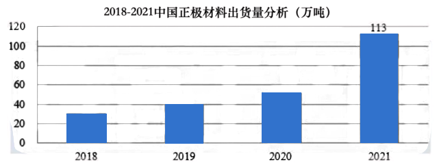 高工产研锂电研究所(GGII)调研数据显示,2019年-2021年,中国锂电三元正极材料出货量19.2万吨、23.6万吨和43万吨,分别同比增长40.4%、23%和82.20%。