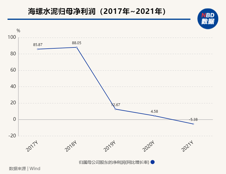 根据其披露的年报来看,2021年海螺水泥实现营收1679.53亿元,同比下降4.73%;净利润为332.67亿元,同比下降5.38%。而将时间线拉长来看,自2019年开始,海螺水泥营收和归母净利润的增速已经连续三年处于下滑。