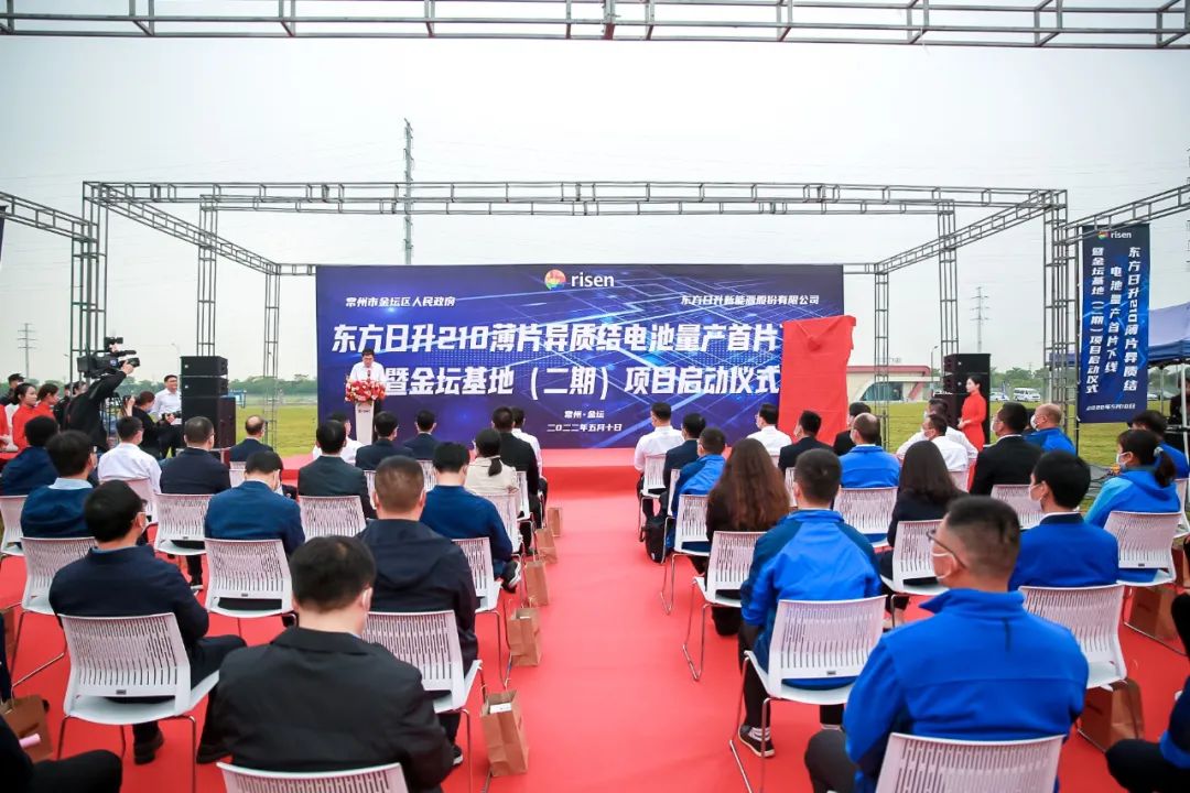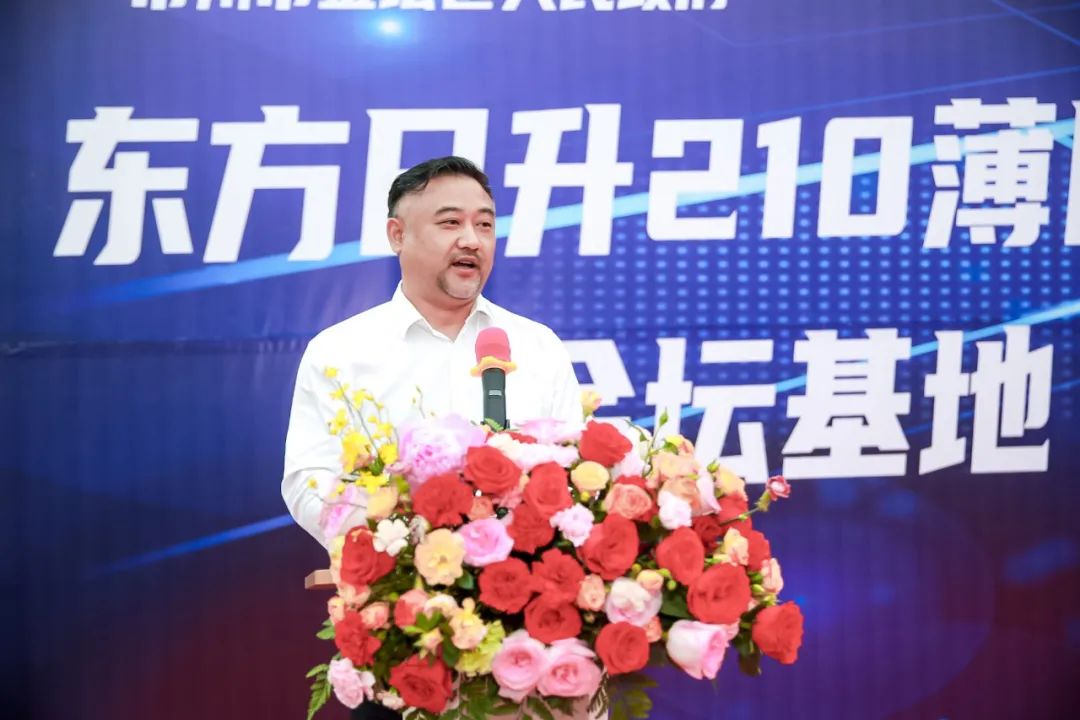 整场会议由金坛区人民政府副区长朱天明主持。他首先祝贺东方日升210薄片异质结电池量产首片成功下线,并对金坛基地(二期)项目正式启动表示热烈祝贺。朱天明指出:“这是上市公司东方日升与金坛区强强联手,政企双赢的丰硕成果,既是东方日升强化科技创新,凭借优秀的低碳制造技术引领光伏产业发展的新征途,也是金坛区光伏产业规模加速扩张,产业层次加快提升的新机遇。各级各部门要为项目推进做好服务,加速金坛基地二期项目建设落地。”