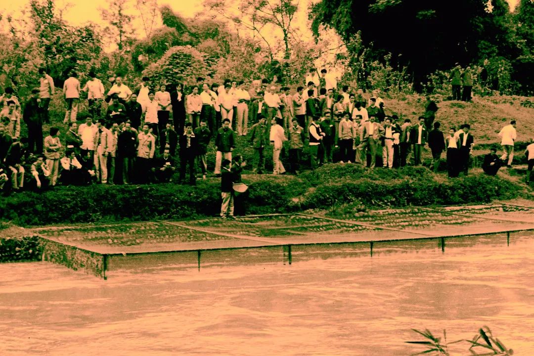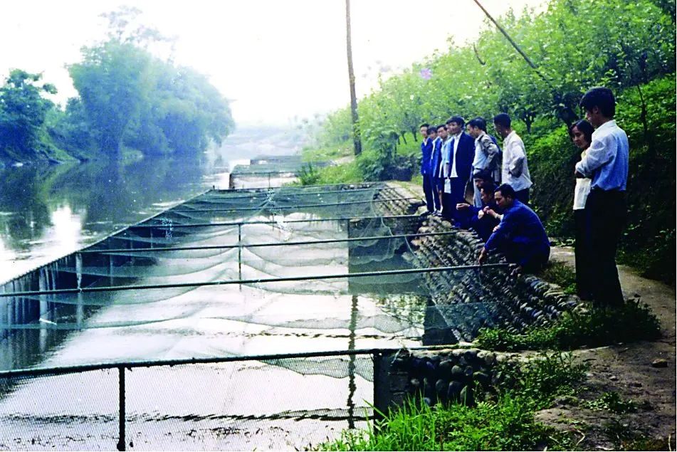 ▲ 1984年10月25日,眉山县水电局和科委联合对网箱养鱼进行验收