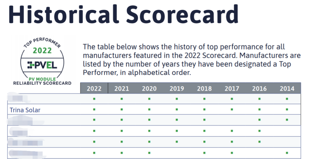 2022PVEL“Top Performer”组件制造商列表(不完全截图)