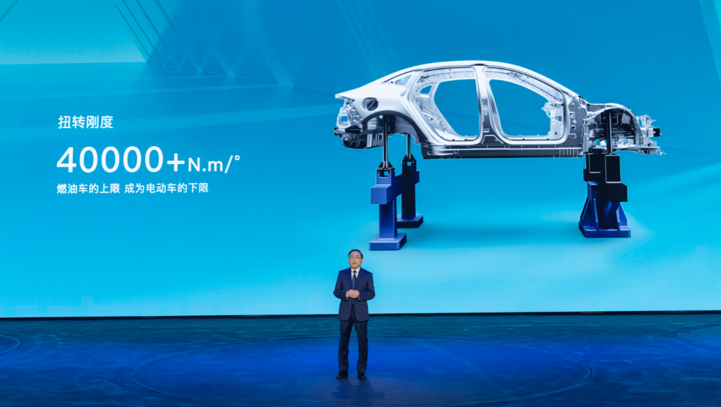 搭载CTB技术的纯电动车型,车身扭转刚度可以轻松超过40000N·m/°。用廉玉波的话说,这么高扭转刚度,“媲美百万级的豪华车,让燃油车的上限成为了电动车的下限”。