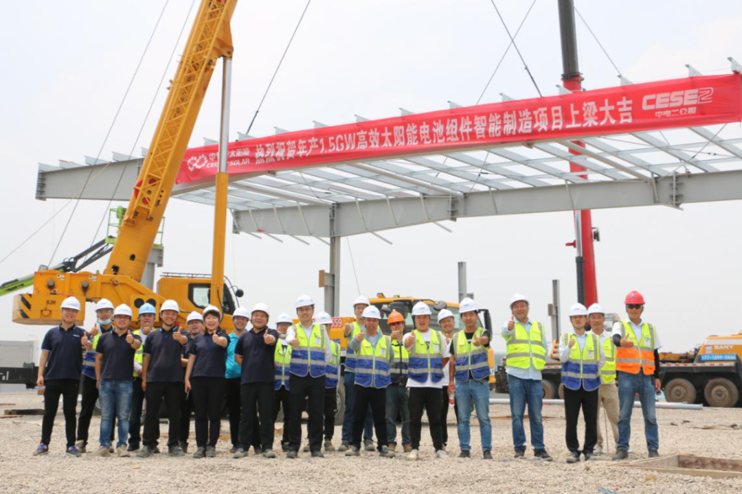 上梁大吉!中节能太阳能1.5GW高效太阳能电池组件智能制造项目将进入钢结构安装阶段
