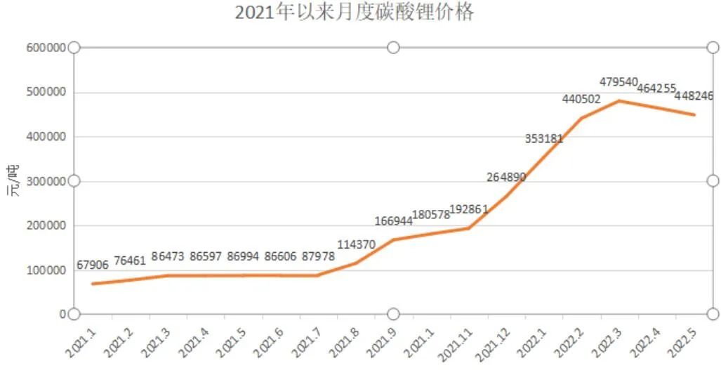 2021年1月到2022年5月碳酸锂价格趋势图