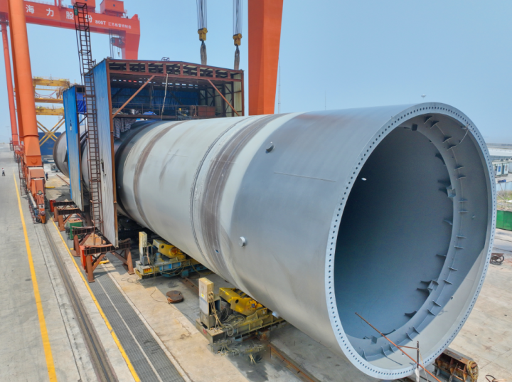 过去,海上风电场建在近海,实现国家“双碳”目标,向深海进军,迎接平价挑战,海力风电的“战法”就是主打产品风机塔筒、海上风机单桩、导管架承载平台从小型化向大型化大踏步跨越。去年,生产4兆瓦、5兆瓦塔筒的海力装备车间,今年长胖了、长高了,变成6.25兆瓦、8兆瓦,最大的做到了10兆瓦以上。