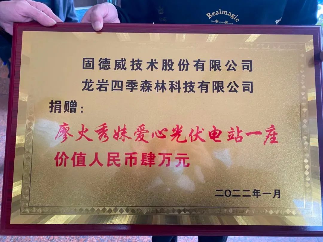 为弘扬积极开展扶贫济困、助力乡村振兴的精神,适中镇人民政府还授予龙岩市四季森林科技有限公司“爱心企业”荣誉称号,固德威与有荣焉!