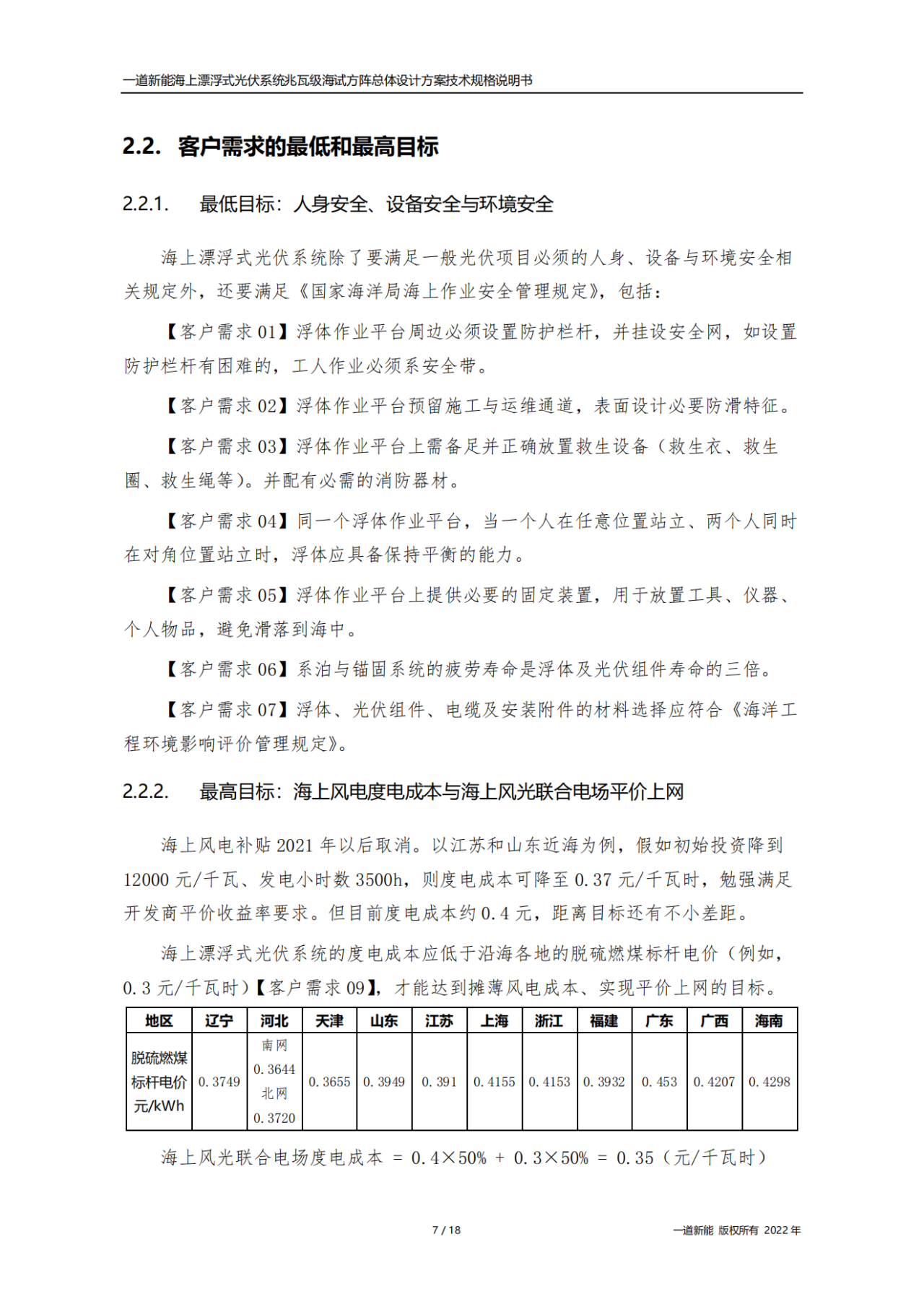 一睹为快!一道新能源编制完成《海上漂浮式光伏系统设计方案》
