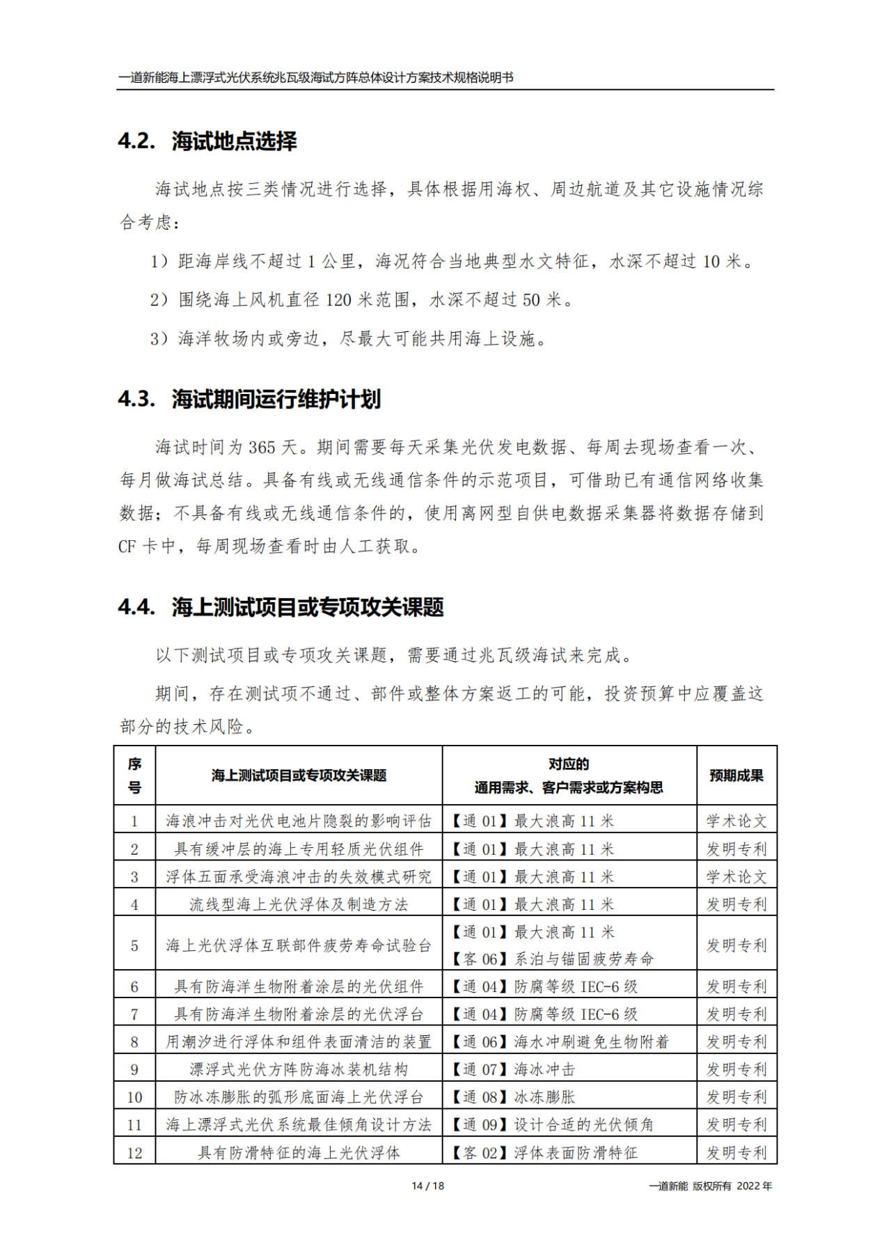 近期,一道新能源系统工程创新研究院编制完成了《海上漂浮式光伏系统兆瓦级海试方阵总体设计方案》,对海上漂浮式光伏系统进行了系统研究。