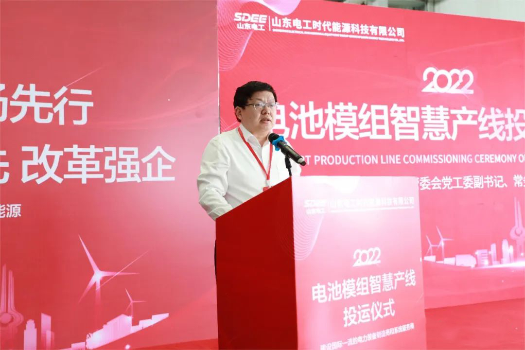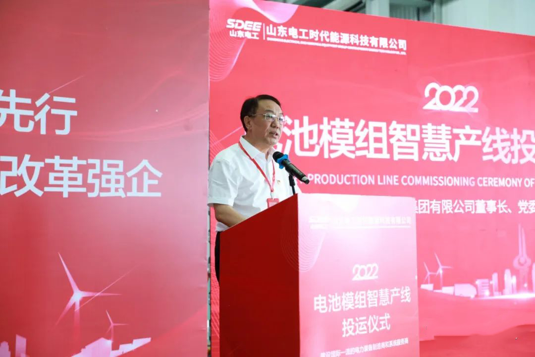 赵永志在欢迎辞中对一直以来帮助和支持企业发展的各级领导、合作伙伴以及社会各界同仁表示感谢。他表示,在“加快生态文明体制改革、建设美丽新中国”的发展要求下,储能技术是支撑能源绿色转型、保障能源安全、促进能源高质量发展的重要手段,电池模组智慧产线的正式投运,标志着山东电工电气践行国家“双碳”战略迈上了新台阶,将全面开启智慧化储能新时代。