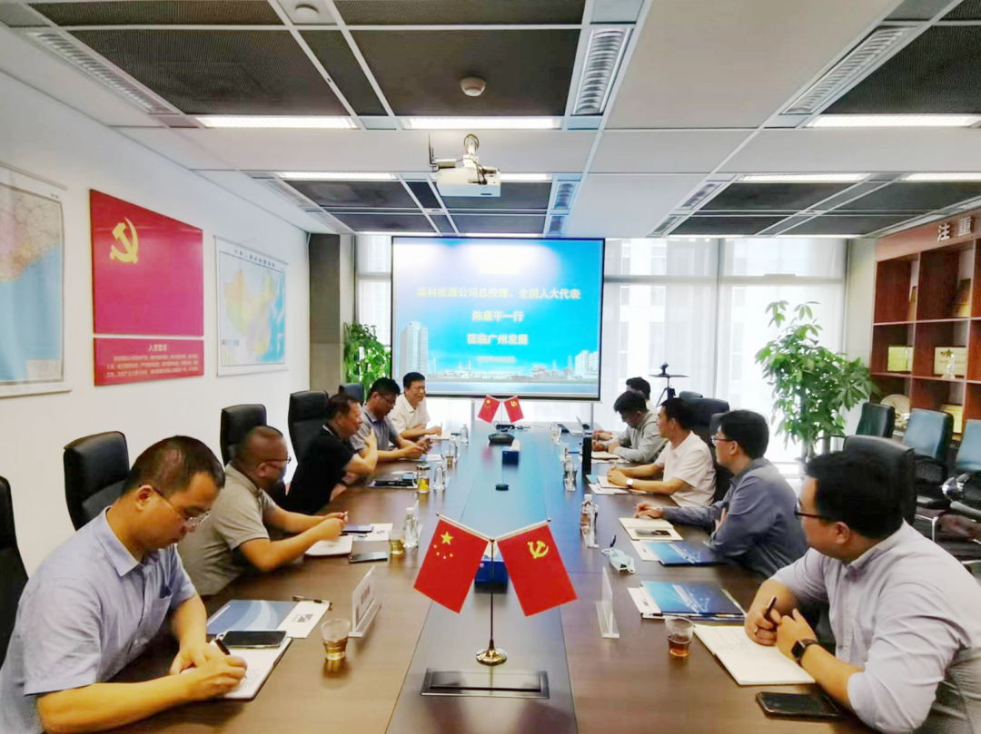 2022年6月22日上午,全国人大代表、晶科能源公司总经理陈康平一行到访新能源公司,就新能源产业链、产业技术、项目开发等多方面进行了深入座谈考察交流,新能源公司党委书记、董事长冯康华,总经理余华堂,技术研发中心、工程部、投资并购部相关人员参加会议。