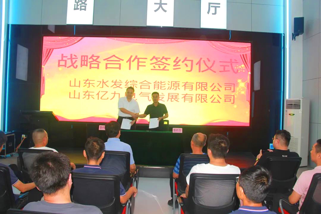 7月2日,水发综合能源公司董事长徐守朝与山东亿九电气发展有限公司董事长王长伟签订关于金乡县风光储氢一体化新能源示范项目的战略合作协议。