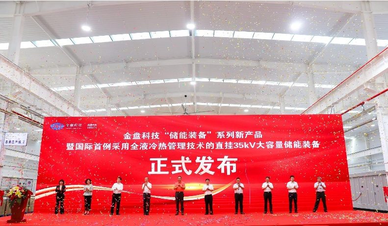 7月10日, 海南金盘智能科技股份有限公司(以下称“金盘科技”)“储能装备”系列新产品暨国际首例采用全液冷热管理技术的直挂35kV大容量储能装备发布会在桂林举行。会上,中高压直挂(级联)储能系统、低压储能系统等储能系列产品正式亮相,这标志着金盘科技核心储能产品已进入商业化进程。