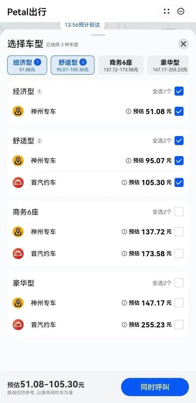 据悉,Petal出行现已在北京、深圳、南京等正式上线。华为表示,支持城市持续增加中。