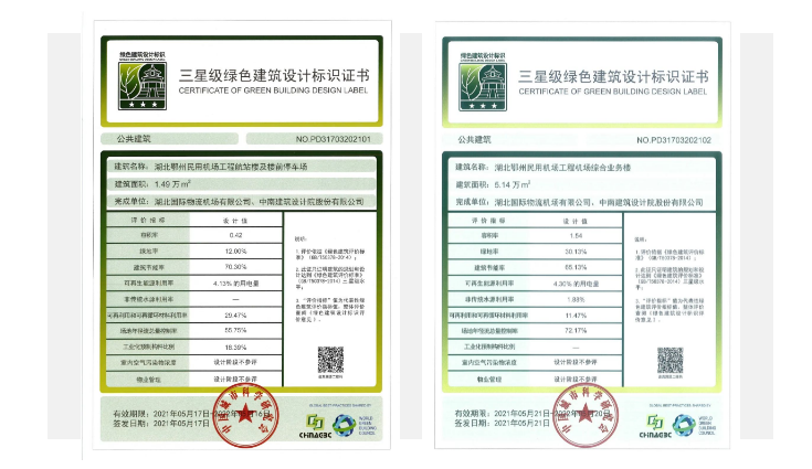 ▲ 鄂州花湖机航站楼和综合业务楼荣获绿色建筑三星级认证