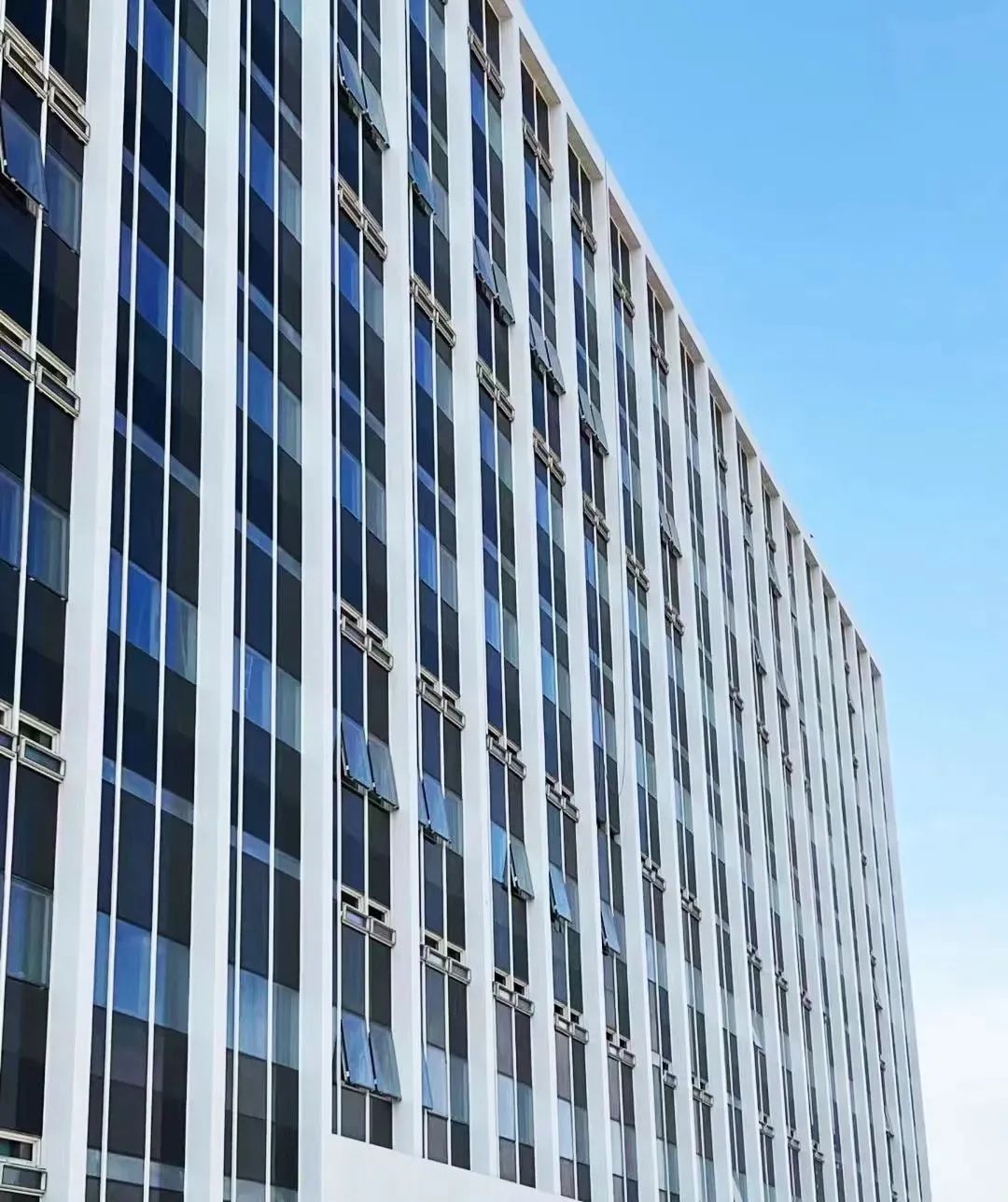 随着鄂州顺丰花湖机场正式投运,综合楼和宿舍楼立面的一期光伏幕墙也对外惊艳亮相。项目分别在综合业务楼和宿舍楼的东、西、南三个立面安装了近6000块不同尺寸、不同透光度的龙焱碲化镉光伏发电玻璃建材。