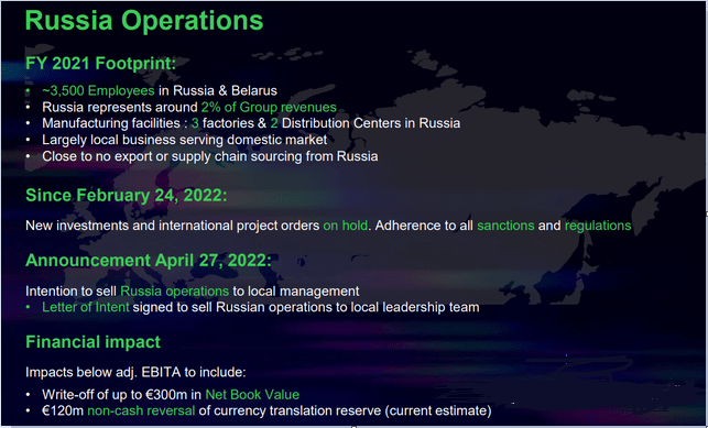 在深入探讨公司的长期机会之前,公司最新的公告是将其俄罗斯业务出售给当地管理层,下面的图片展示了主要亮点
