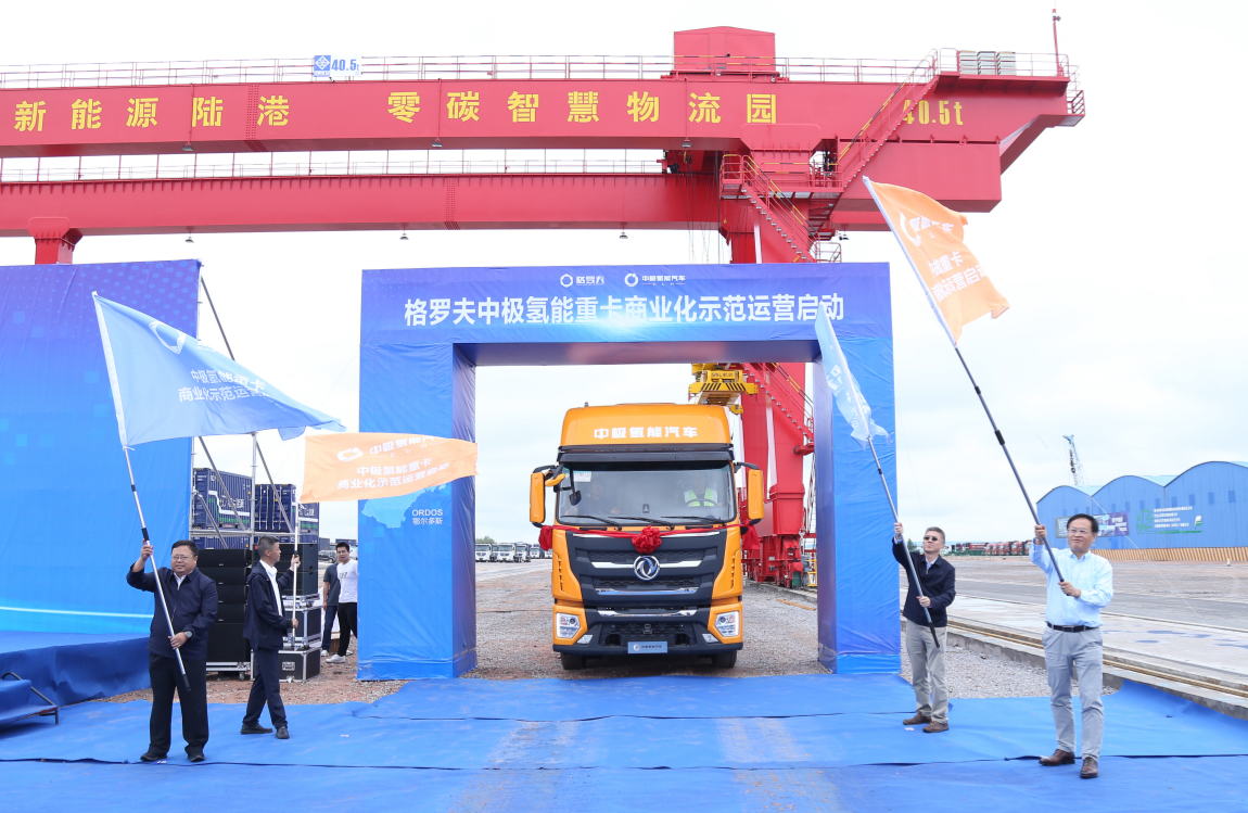 随着氢能重卡车辆发动,格罗夫交付鄂尔多斯用户的首批中极氢能重卡正式投入运营。
