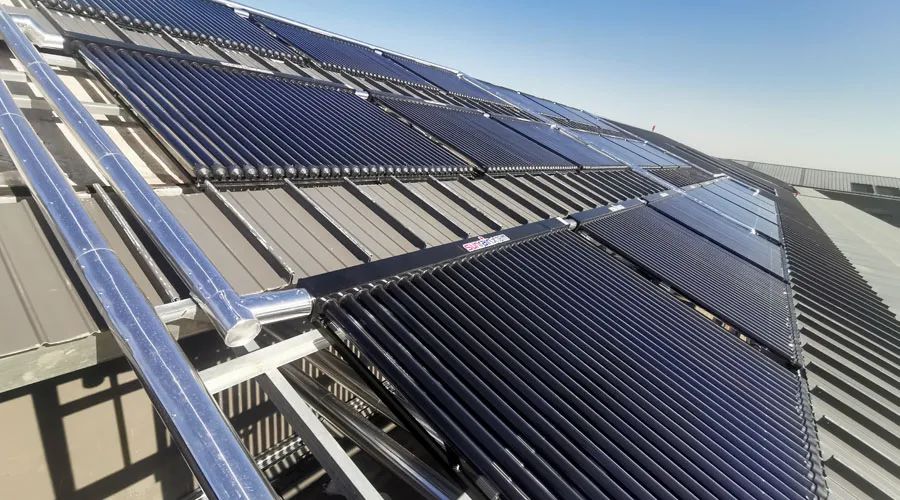 整个机场热水系统以太阳能为主要能源,采用金属热管集热器承压系统保证太阳能超高利用率;储热系统采用双水箱恒温系统以及空气能辅热系统,应对阳光资源不足或者热水需求突增等特殊情况。