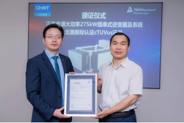 卓而不凡!正泰电源275kW组串式逆变器获北美新标cTUVus证书