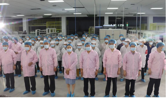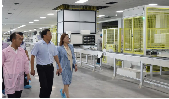 在张鸿雁及公司高管的陪同下,领导们参观了欧圣达临沂生产基地。夏军重点介绍了车间的自动化生产线、生产各环节技术原理、产线布局、产能规划及实际产值等情况,并就基地的N型TOPCon技术路线做出了详尽介绍。领导们详细了解了山东欧圣达新能源有限公司的未来规划,并给出了宝贵的建议和意见。