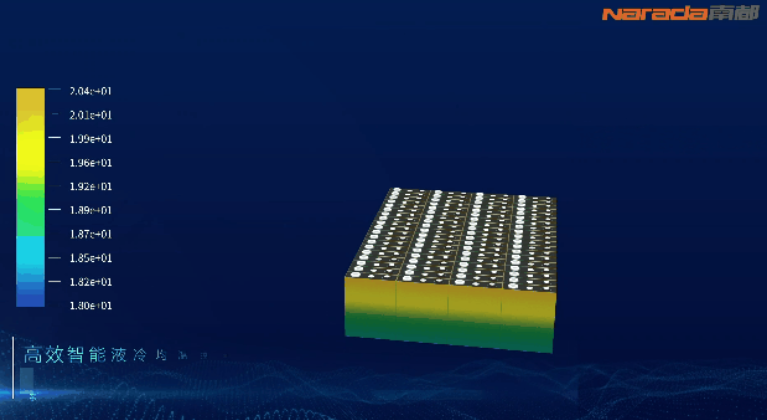 为使储能系统达到更佳的性能和寿命,南都能源结合高效智能液冷温控技术,液冷管道多级分布,使得集装箱系统内部温差小于5℃,Pack内温差不超过3℃,有效提升系统寿命,系统循环寿命可达万次以上。