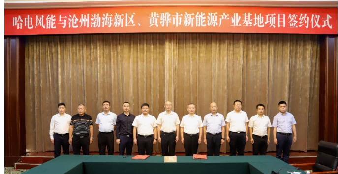 哈电风能总经理助理马凤龙以及哈电风能、渤海新区、黄骅市政府、港城产业园区有关负责同志参加签约仪式。