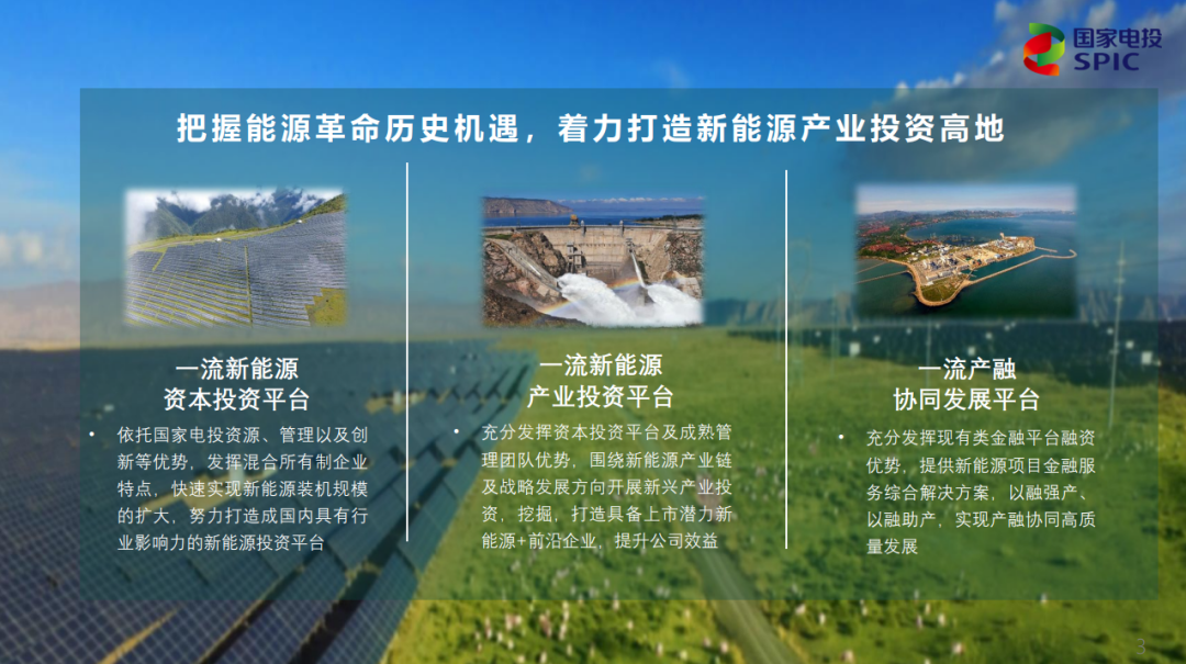 电投融和增资项目是国家电投集团落实国家“3060”战略,保持新能源领域领先优势的重大战略举措;是国家电投集团挖掘存量资产融资潜力,实现转型发展,打造市场化清洁能源资产管理和投资平台的重大举措。