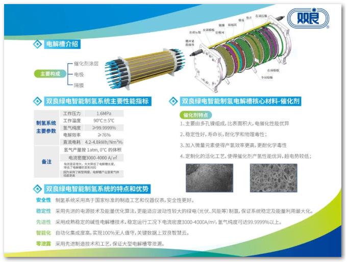 以绿电制氢零碳技术助力新能源替代,是实现碳中和的重要驱动力。由双良自主研发的“绿电智能制氢系统”,分为“高性能电解槽、气液分离装置、纯化装置和电源”四大核心部分,具有制备量大、智能、安全、可靠等显著优势,采用高电流密度设计的电解槽最大制备量可达1000Nm³/h,通过气液分离装置将碱液沉降分离后,经过提纯的氢气纯度可达到99.9999%以上,真正实现无污染、零排放、低成本。可广泛应用于煤化工与石化、钢铁与冶金、合成氨等工业领域与民用领域,减少碳排放,助力用能终端实现“双碳”目标。
