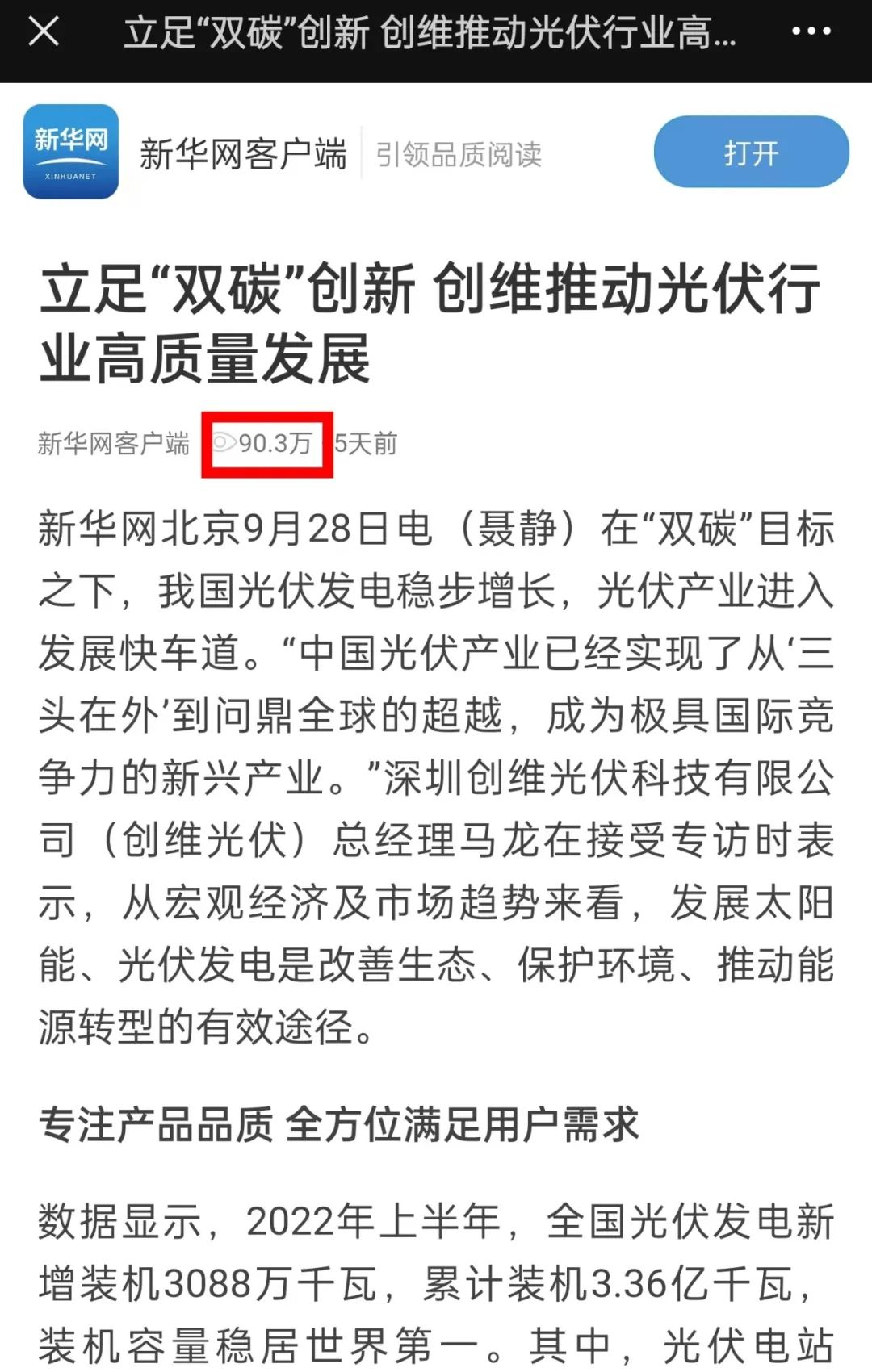 新华网、人民日报等国家级权威媒体的争相报道,充分证实创维光伏得到了社会各界的一致认可。在国家“双碳”目标愿景下,光伏产业作为可再生能源领域的中坚力量,对推动经济社会绿色低碳转型发展、实现双碳目标发挥着重要作用。