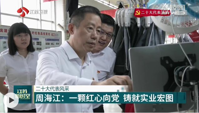 党的二十大代表,红豆集团党委书记、董事局主席周海江说,通过党建,机遇优势、人才优势、和谐优势合在一起,转变成了企业的发展优势。