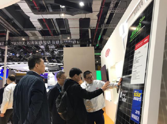 杜邦光伏及氟材料事业部携手全球极具创新力的光伏企业晶科能源,展出晶科透明背板高效双面组件Swan。作为唯一的组件产品,此系列产品荣获2019年Intersolar光伏创新大奖。采用透明背板的双面发电组件,其更轻的重量确保支架结构无需额外加固,相比双玻带边框组件显著降低支架结构和组件安装的相关成本,从而能够有效降低总体系统成本,实现更低的度电成本,更高的投资回报。