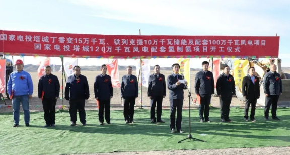 日前,国家电投塔城丁香变15万千瓦、铁列克提10万千瓦储能及配套100万千瓦风电项目、国家电投塔城120万千瓦风电配套氢制氨项目开工仪式在额敏县玛依塔斯举行。
