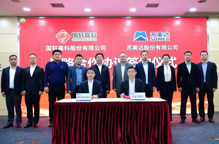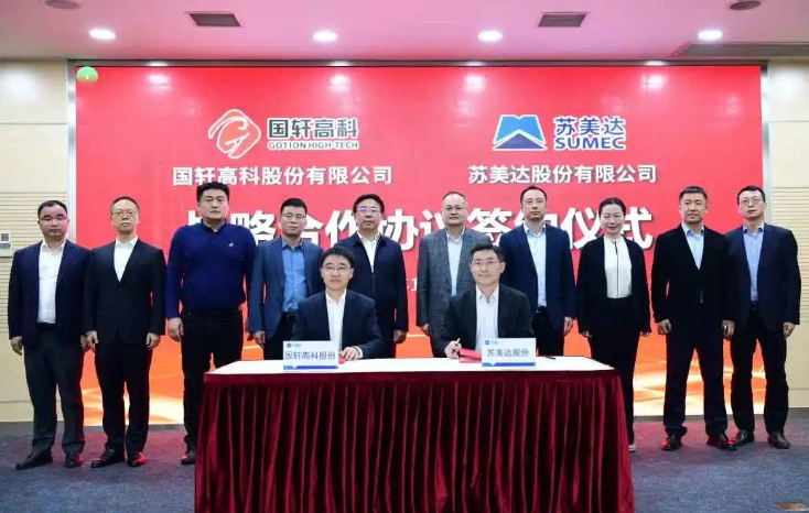 10月9日,苏美达股份有限公司(以下简称苏美达)与国轩高科股份有限公司(以下简称国轩高科)签订战略合作协议。苏美达党委书记、董事长杨永清,国轩高科党委书记、董事长李缜见证签约。苏美达党委委员、副总经理辛中华,国轩高科中国业务板块总裁王启岁代表双方签约。