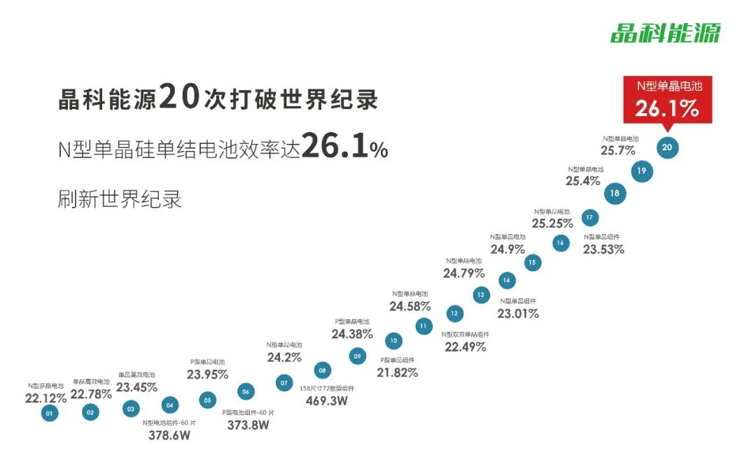 再创新辉煌!26.1%!晶科能源刷新高效N型TOPCon电池转换效率记录