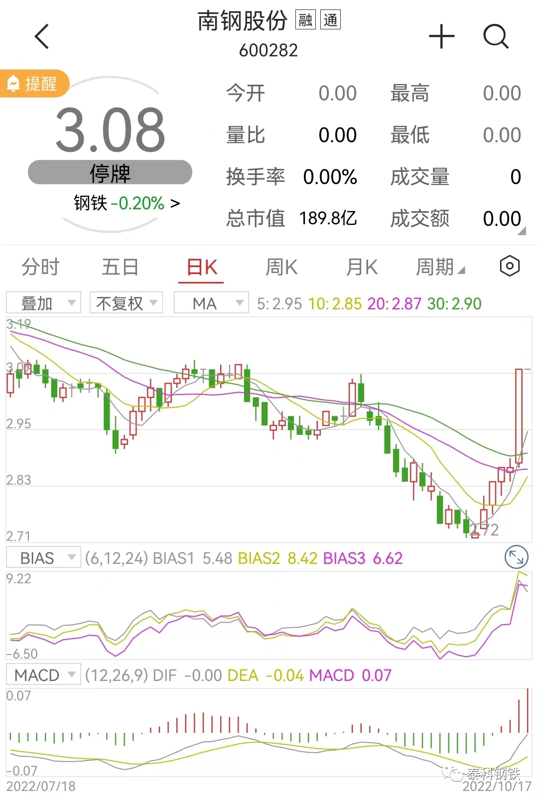 【南钢股份:已在核实复星集团出售公司股权传闻】财联社10月17日电,针对复星集团将向沙钢集团出售南钢股份股权的传闻,记者致电南钢股份,对方称已留意到相关传闻,已在与股东核实,目前暂时没有得到明确的书面回复,信息核实后会根据情况披露。沙钢集团则回复记者称,相关信息以上市公司公告为准。