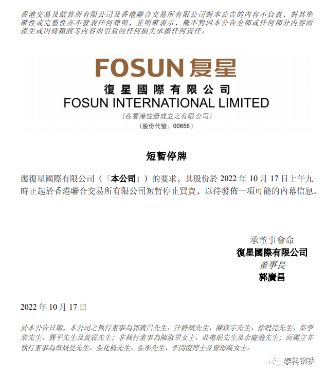 突发公告!南钢股份、复星国际今日停牌!!复星国际公司股份于今天上午九时起短暂停止买卖,以待发布一项可能的内幕消息。传闻:沙钢集团收购南钢股份60%股权!