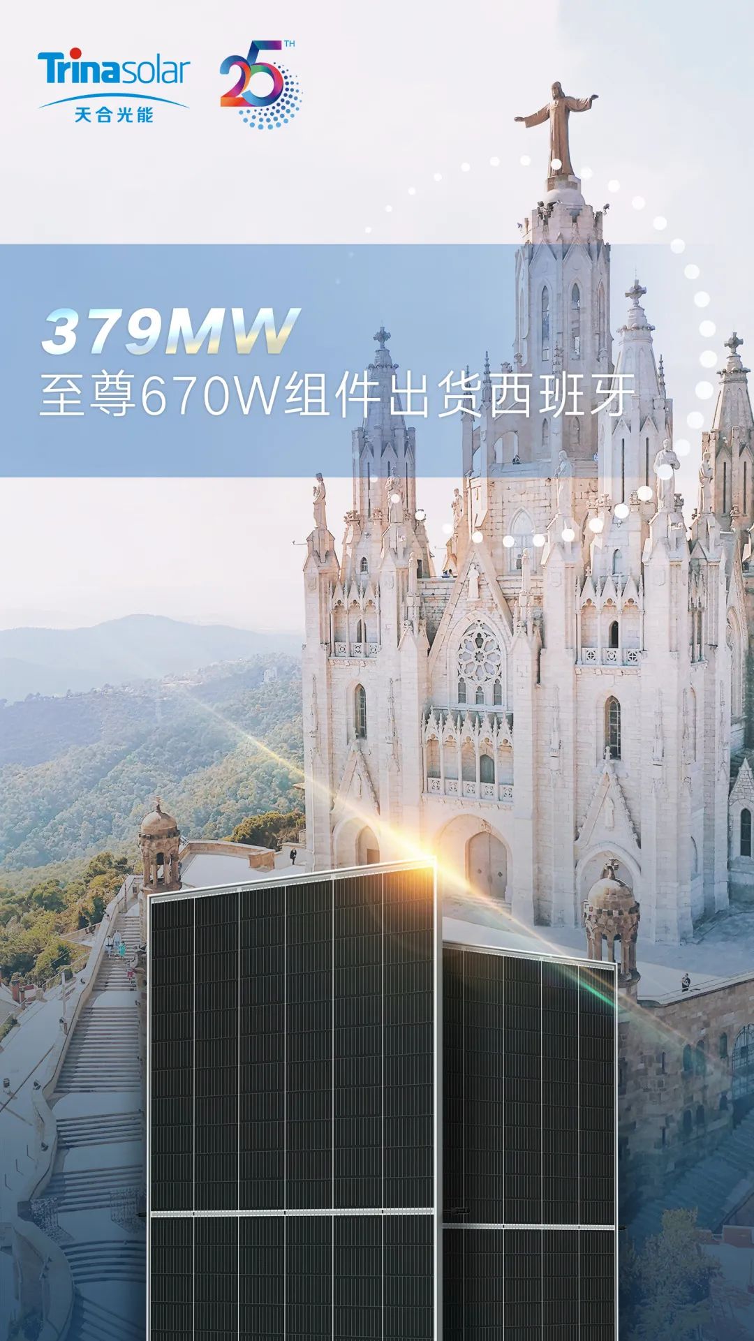 添砖加瓦!天合光能379MW至尊670W系列出货西班牙超大光伏电站!